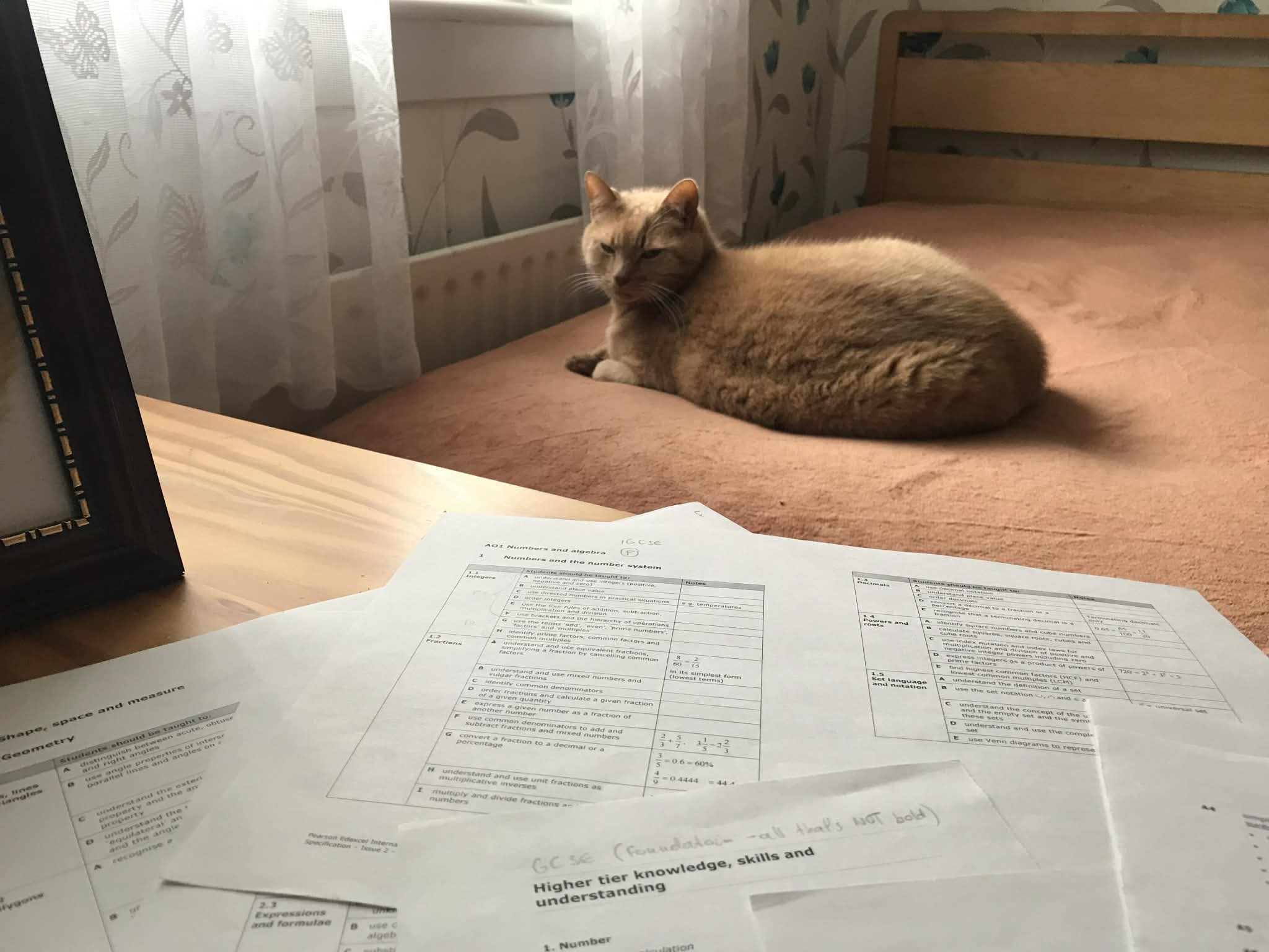 This is what a planning of GCSE and iGCSE syllabus looks like. Feline supervision not required, but certainly helpful.