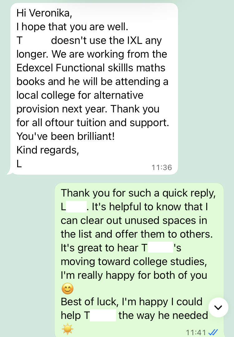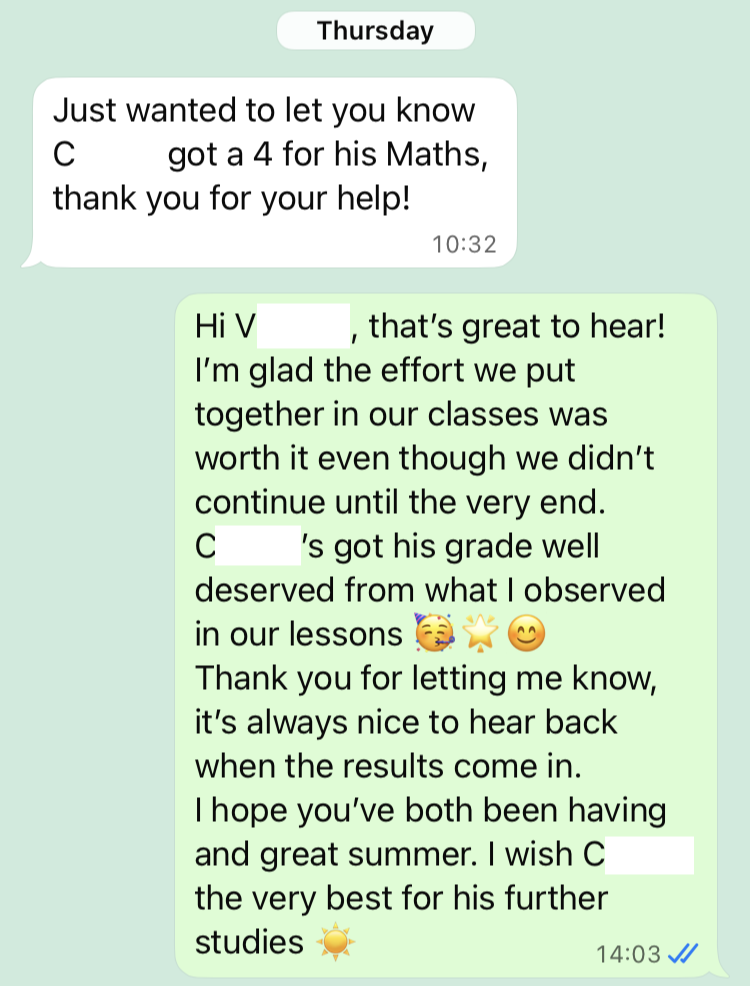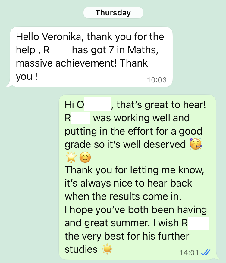 My teaching methods are the same across all my programs. Here is what parents have shared about the results their children achieved with me outside of the Maths Club, too: